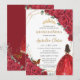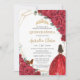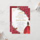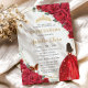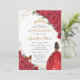 Quinceañera Red Roses Floral Gold Princess Crown Invitation