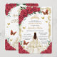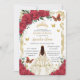 Quinceañera Red Roses Floral Ivory Dress Princess Invitation