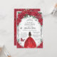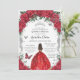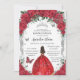 Quinceañera Red Roses Floral Princess Dress Silver Invitation