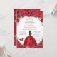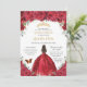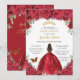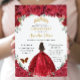 Quinceañera Red Roses Floral Princess Gown Gold Invitation