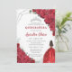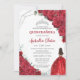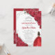 Quinceañera Red Roses Floral Silver Princess Tiara Invitation