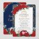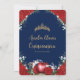 Quinceañera Red Roses Floral Snow White Navy Gold Invitation