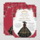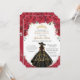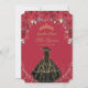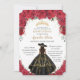 Quinceañera Red Roses Flowers Black Dress Hat Gold Invitation