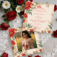 Quinceañera Red Shades Sweet Floral Spanish Photo Invitation