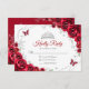 Red silver and white floral Quinceanera RSVP reply card. Features, script font, silver butterflies, watercolor red roses and tiara. Perfect for an elegant princess style glam celebration. Personalize with your own details.