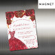 Quinceanera red white dress roses luxury magnetic invitation