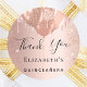 A sticker for a girly and glamourous Quinceañera, 15th birthday party. A blush, rose gold coloured background with faux glitter dust and balloons. The text: Thank You is written with a large modern hand lettered style script. Personalise and add a name.