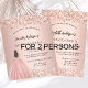 A modern, stylish and glamourous invitation for 2 Quinceañeras, 15th birthday parties. A rose gold background with faux sparkles, a girl wearing a ball gown. The names are written with a modern hand lettered style script. Personalise and add your party details.