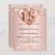 For an elegant Quinceañera, 15th birthday. A rose gold background. Decorated with rose gold, pink faux sparkles and balloons. Personalise and add a name, and party details. The name is written with a hand lettered style script, number 15 with balloon style fonts.