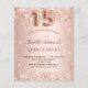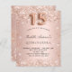 For an elegant Quinceañera, 15th birthday party. A rose gold gradient background. Decorated with rose gold faux glitter dust. Personalise and add a name and party details. The name is written with a hand lettered style script. Number 15 is written with a balloon style font.