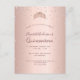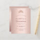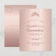 A modern, stylish and glamourous invitation for a girl's Quinceañera, 15th birthday party. A faux rose gold metallic looking background decorated with rose gold faux diamond sprinkle and a tiara, crown. The name is written with a modern dark rose gold coloured hand lettered style script. Templates for your party details.
