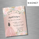 A modern, stylish and glamourous magnetic invitation for a Quinceañera, 15th birthday party. A rose gold background with blush pink flowers, a girl wearing a ball gown. The name is written with a modern hand lettered style script. Personalise and add your party details.