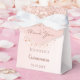 Elegant, classic, glamourous and girly for a Quinceañera, 15th birthday party favours. Rose gold and blush pink gradient background. Decorated with faux glitter dust. With the text: Quinceañera and Thank You written with a modern dark rose coloured hand lettered style script. Personalise and add a name and a date.