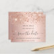 A girly and trendy Save the Date card for a Quinceañera, 15th birthday party. A feminine pink, rose gold faux metallic looking background decorated with faux rose gold glitter dust. Personalise and add a date and name/age. Dark rose gold coloured letters. The text: Save the Date is written with a large trendy hand lettered style script.