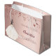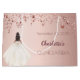A rose gold gradient background decorated with stars and a girl in an ivory coloured dress. Personalise and add name, date.
