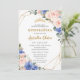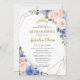 Quinceañera Royal Blue Blush Floral Gold Tiara Invitation