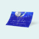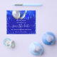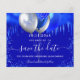 A trendy royal blue background decorated with royal blue drips, confetti, and balloons. Personalise and add a date and name/age. The text: Save the Date is written with a large trendy hand lettered style script.