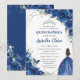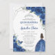 Quinceañera Royal Blue Floral Princess Birthday 15 Invitation