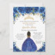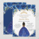 Quinceañera Royal Blue Floral Princess Birthday 16 Invitation