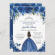 Quinceañera Royal Blue Floral Princess Birthday Invitation