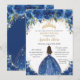 Quinceañera Royal Blue Floral Princess Birthday Invitation