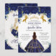 Quinceañera Royal Blue Floral Princess Gold Horses Invitation