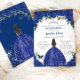 Quinceañera Royal Blue Flowers Princess Birthday Invitation