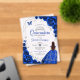 Quinceanera Royal Blue Silver Floral Dress Acrylic Invitations