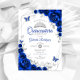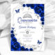 Royal blue, silver and white Quinceanera celebration invitation. Features, script font, butterflies, watercolor roses and tiara. Perfect for an elegant princess style glam celebration. Personalise with your own details. Printed Zazzle invitations or instant download digital printable template.