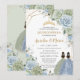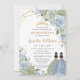 Quinceañera Sage Green Baby Blue Floral Twins Gold Invitation