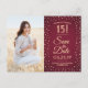 Quinceañera Save the Date 2 Photo Burgundy & Gold Invitation Postcard