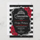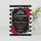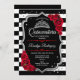Features stripes, script font, red roses, tiara and confetti. Classy design with faux glitter silver. Perfect for an elegant glam celebration.