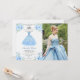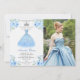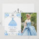 Quinceanera Silver Blue Floral Gown Photo Invitation