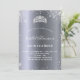 For an elegant Quinceañera 15th birthday. A faux silver looking background. Decorated with faux glitter and a tiara, crown. Personalise and add a name, and party details. The name is written with a hand lettered style script