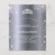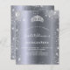 For an elegant Quinceañera 15th birthday. A faux silver looking background. Decorated with faux glitter dust and a tiara, crown. Personalise and add a name, and party details. The name is written with a hand lettered style script
