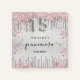 Modern, stylish and glamourous for a girl's Quinceañera 15th birthday party.  A faux silver looking background, decorated with pink and faux silver glitter dust.    Personalise and a name and a date.  Number 15 is written with a balloon style font, script.