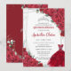Quinceañera Silver Red Roses Floral Dress Gown Invitation
