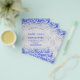 For a trendy Quinceañera, 15th birthday party. A faux silver looking background. Decorated with royal blue confetti. Personalize and add a name and party details. The name is written with a hand lettered style script