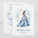 Spanish Quinceañera Sophisticated Blue Wreath Garland and Exquisite Doll in Blue Invitation Card.