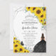Quinceañera Sunflower Floral Silver Black Dress Invitation