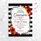 Features stripes, script font, sunflowers, red roses, tiara and confetti. Classy design with faux glitter silver. Perfect for an elegant glam celebration.