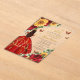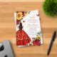 Personalise this vibrant red and sunflower floral Quinceañera / Sweet 16 birthday acrylic invitation easily and quickly. Simply click the Edit Using Design Tools button to further edit the text, change font styles and font colours. Featuring a girl dressed in a beautiful red dress, elegant red flowers, vibrant sunflowers and red and gold butterflies. The butterflies, quince girl and crown are moveable, resizable, multipliable and removable. Customise it to suit your occasion. Matching items available in store. (c) Somerset Fine Paperie by The Happy Cat Studio.