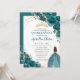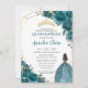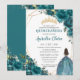 Quinceañera Teal Blue Green Floral Princess Crown Invitation