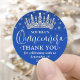 Quinceañera Thank You Elegant Crown Royal Blue Classic Round Sticker