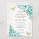 Quinceañera Turquoise Blue Floral Gold Butterflies Invitation