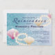 Hand designed and illustrated teal blue Quinceanera 15th birthday invitation with under the sea theme with a treasure of pearls and shells and lace. Customise with the details of your special event.