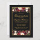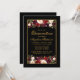 Quinceanera Watercolor Burgundy Floral Black Gold Invitation