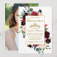 Quinceanera Watercolor Burgundy Pink Floral Photo Invitation