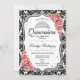 Features damask pattern, script font, blush pink roses, tiara and confetti. Classy peachy pink design with faux glitter silver. Perfect for an elegant glam celebration.