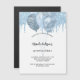 A white background. Decorated with light blue faux glitter drips, paint dripping look and balloons. Personalise and a name and party details.